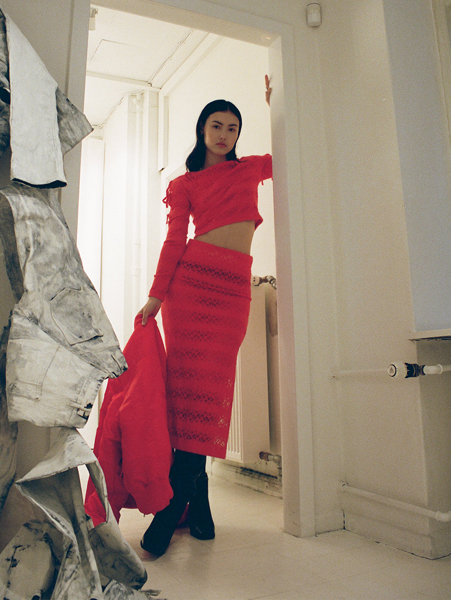 The collection encapsulates the spirit of the '90s grunge era, with deconstructed designs and strong silhouettes – an echo of a time that championed the raw and unrefined. The interplay of fabric lightness and heaviness is carefully balanced within each design, ensuring each piece moves with purpose and poise. We've meticulously selected materials with contrasting textures, weights, and drapes to craft unique combinations.