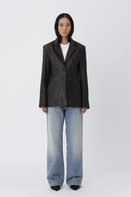 Silva Leather Blazer - Deep Brown