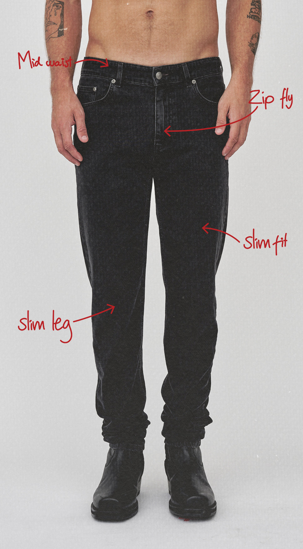 Dean” is a classic slim fit jeans with a mid-waist, zip fly and slim leg. The jeans construction comes with five pockets and five belt loops. They feature branded logo buttons and rivets, leather label, along with our signature dart at the back pockets.